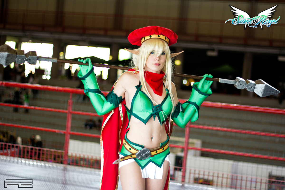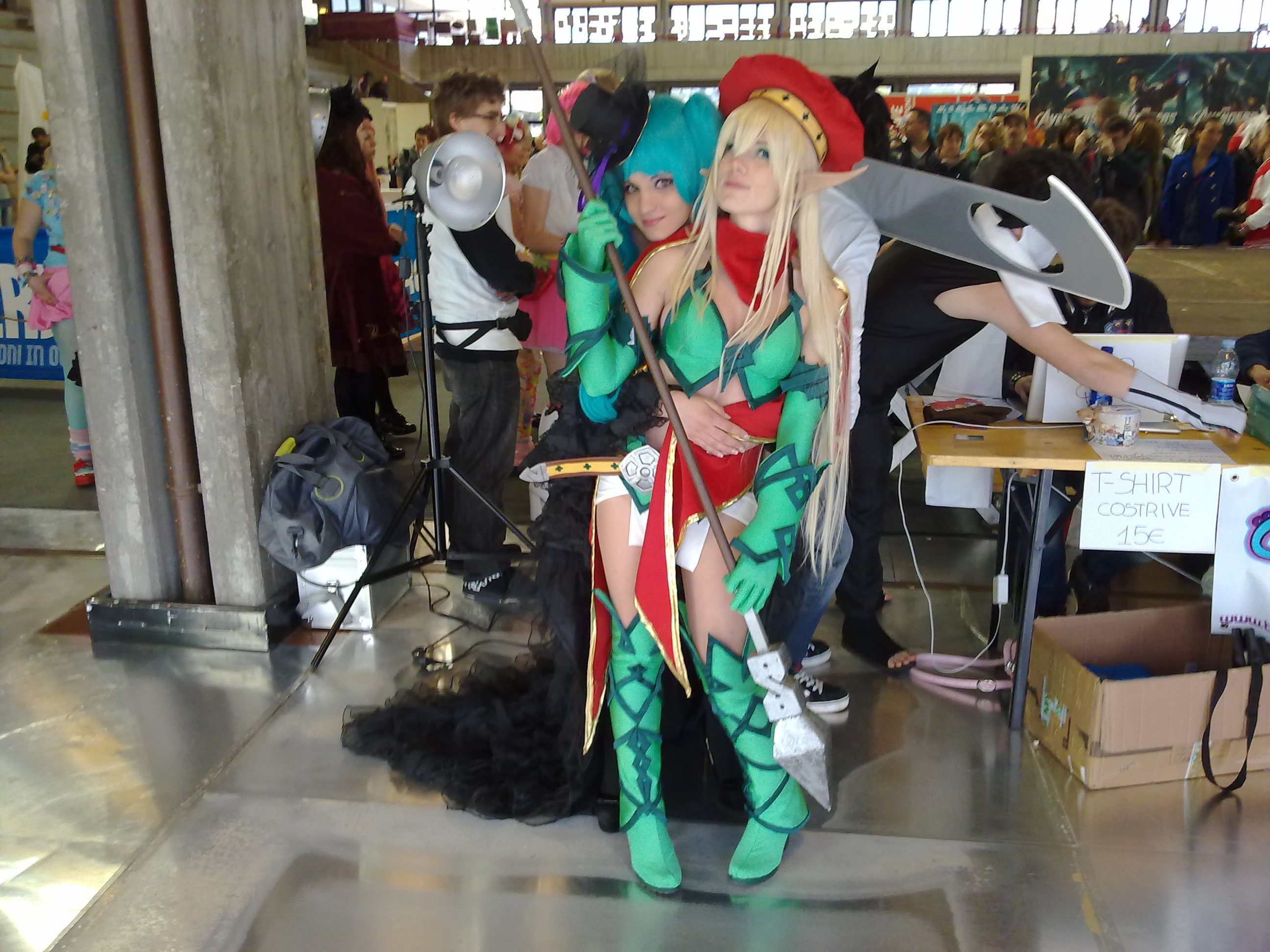 Al mattino ci siamo preparate a ritmo di musica, sculettando per la stanza, e udite udite: noi donzelle eravamo pronte e truccate prima dei maschi al ritrovo per la colazione (sono soddisfazioni!). Ovviamente ci siamo messe costume e parrucca in fiera solo dopo aver allestito il banchetto delle iscrizioni e quello per il fonico; io avevo un orecchio da elfa che non ne voleva sapere di stare al suo posto e si curvava sempre (odio profondo -.-), pure il basco stava ovunque tranne che sulla mia testa nonostante ci avessi messo 2 forcine per fissarlo (argh!), e giusto per contornare il tutto il costume non stava fermo visto che rispetto quando lo ho fatto ho messo su qualche kg, e mi dovevo sistemare di continuo X°D
