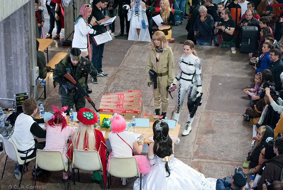 Ho notato che diversamente dalle fiere Trivenete i cosplayer ascoltano di più, nel senso che se si dice loro “dopo aver fatto la vostra sfilata/esibizione, fate la posa per il pubblico, quella per la giuria e poi potete scendere” lo fanno! Sembra una cagata, ma capitava spessissimo ( a Treviso o Pordenone ad esempio) che i cosplayer finita la scenetta scappassero via subito X°D