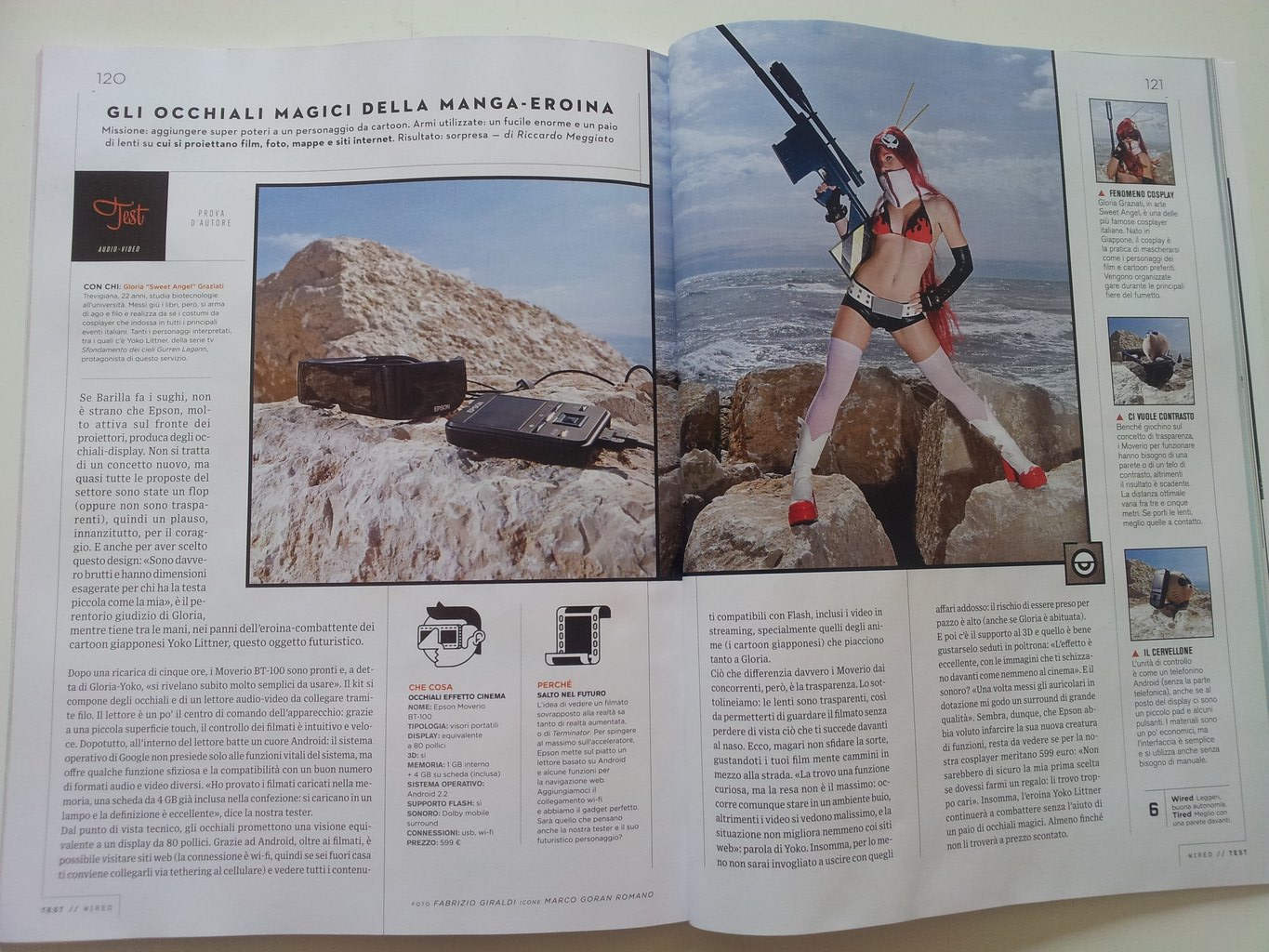 Bene, maggio è giunto e con esso anche Wired: ci sono due paginette dedicate a me vestita da Yoko come potete vedere nell’immagine in alto. La redazione di Wired mi ha contattata per farmi provare un gadget, si tratta di un paio di occhiali attraverso i quali è possibile vedere film senza avere televisori, schermi enormi o andare al cinema, una genialata insomma! Potete leggere qualcosina in più nella foto dell’articolo che mi ha gentilmente fornito Paolo NetFox e ho pubblicato qui sopra :P