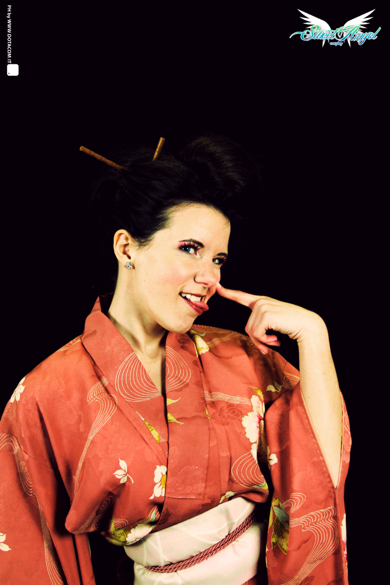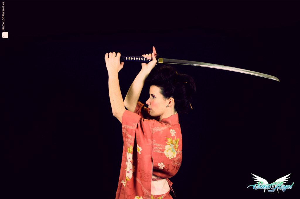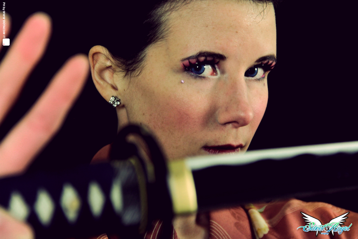 Per questa occasione ho potuto indossare un bellissimo kimono in seta antico un secolo, ho imparato qualche mossa di akido utilizzando una katana vera grazie a Dottor Saotome, in più Cinzia Ganeo mi ha fatto una splendida acconciatura ai capelli.