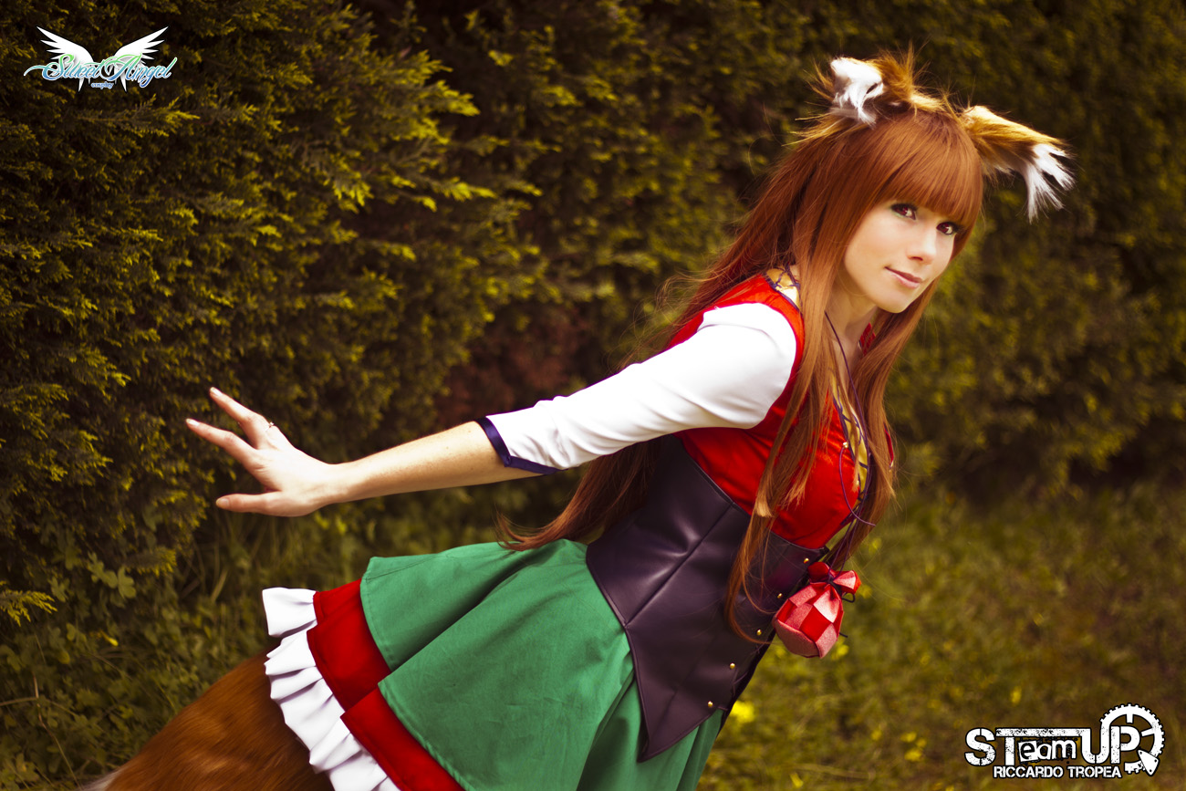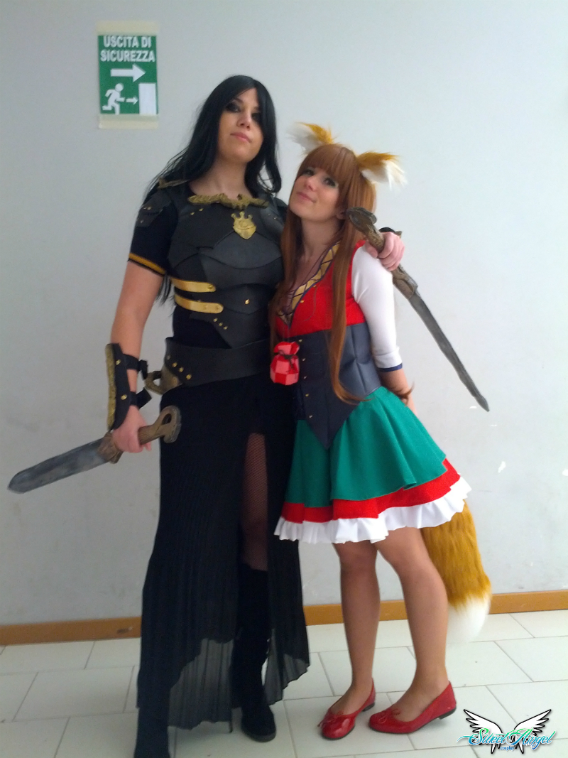 E’ stato il turno del saggio lupo Horo, costume realizzato in 10 giorni appena finiti gli esami e saputo dell’invito a questa fiera. All’inizio non ero soddisfatta del mio lavoro ed ero abbattuta, poi piano piano le cose venivano come volevo e il mio morale è tornato su. Del resto è il mio primo costume del tutto sartoriale con 3 gonne (bianca, rossa, verde) e un corpino, quindi anche se posso migliorare ancora, mi ritengo soddisfatta :3