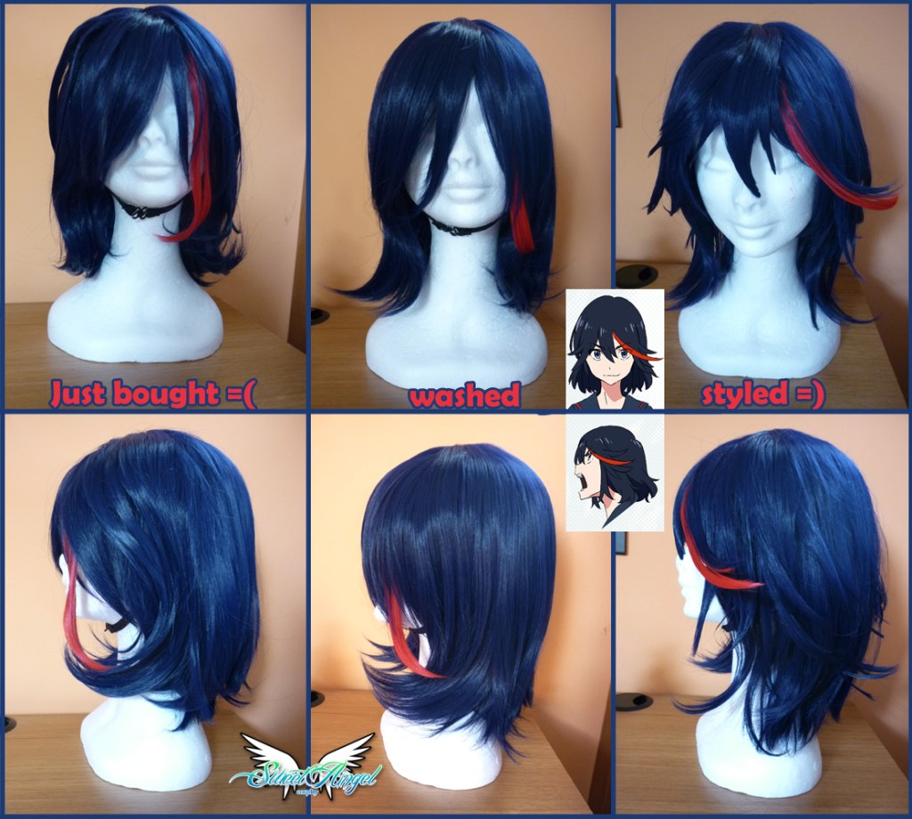 Io ho dovuto fare un trattamento d’urgenza alla parrucca di Ryuko: comprata nuova da un negozio ebay, è arrivata puzzolente e con un’acconciatura indecente (ciocche laterali incollate tra di loro in modo rigido).