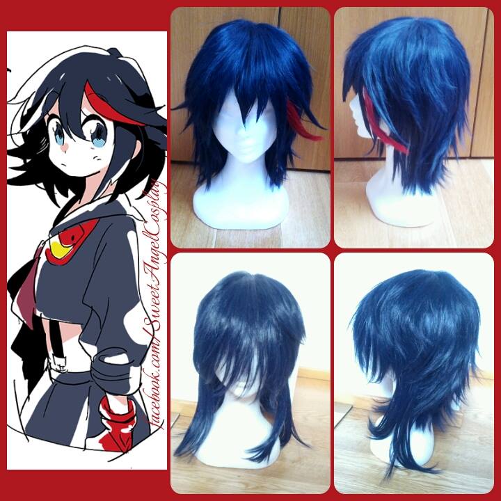 Ho scelto di prendere una base blu scura per il mio cosplay di Ryuko e modificarla successivamente aggiungendo il ciuffo rosso, sostanzialmente perchè non ne trovo di buone già pronte. Ne avevo presa una da ebay che mi è arrivata di un blu super-acceso, puzzolente e smorta (leggi qui come la ho rimessa in sesto) che non vedevo l’ora di cambiare xD