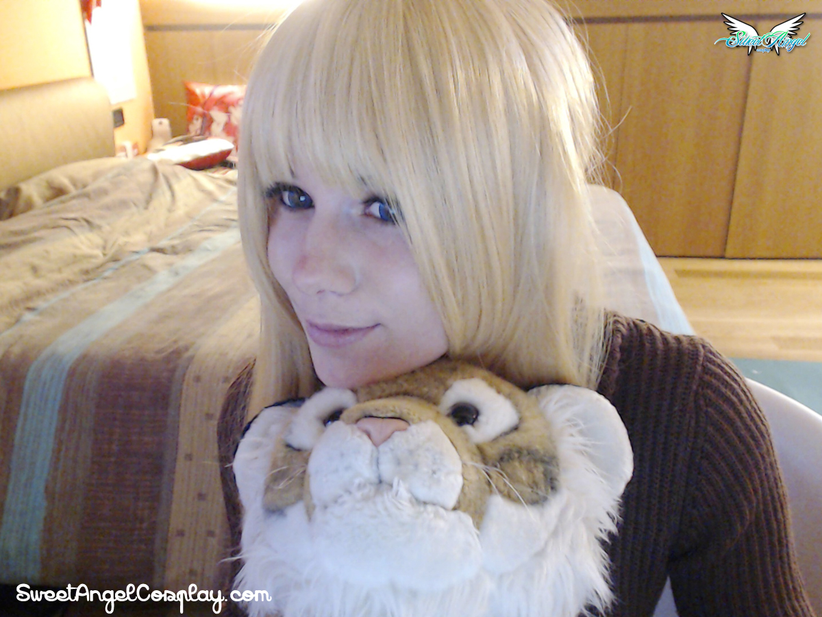Questa parrucca mi ha fatto ricredere sulla mia fissa che sto male bionda. Davvero, mi piace assai: è morbida morbida, è liscia, non si aggroviglia solo a guardarla, ha fibre di colore diverso ed è bella folta (=non si vedono i miei capelli sotto e nemmeno la retina!).