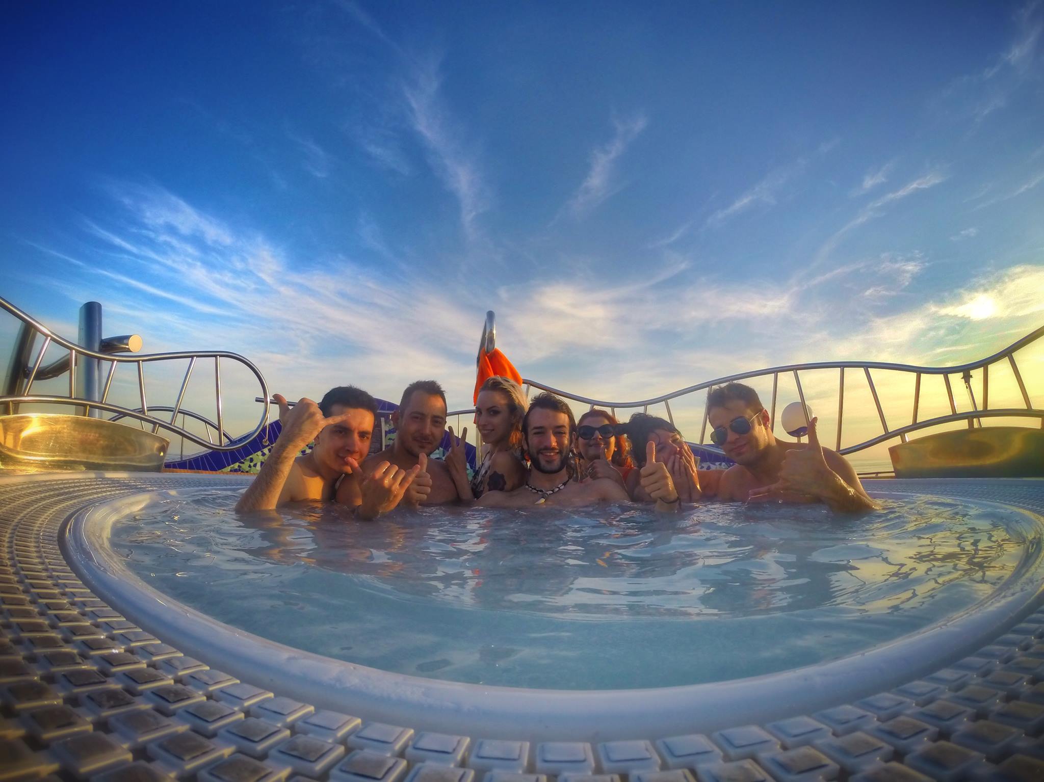 Tornati in nave nel pomeriggio, ci siamo buttati in piscina, per poi cenare e ricambiarci con il cosplay della serata, cioè gli stessi del day 3.
