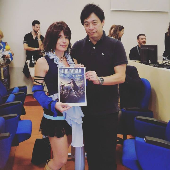 Sabato ho fatto parte del gruppo di cosplayer che hanno assistito in prima fila alla presentazione di FFXV a opera di Hajime Tabata del suo team. Ho avuto anche la possibilità di fare qualche foto con loro e avere un autografo. Mi ha spronato a continuare così con il cosplay e suggerito di fare qualcosa anche del nuovo Final Fantasy (non vedo l’ora di poterci giocare – prima però bisogna avere una PS4).