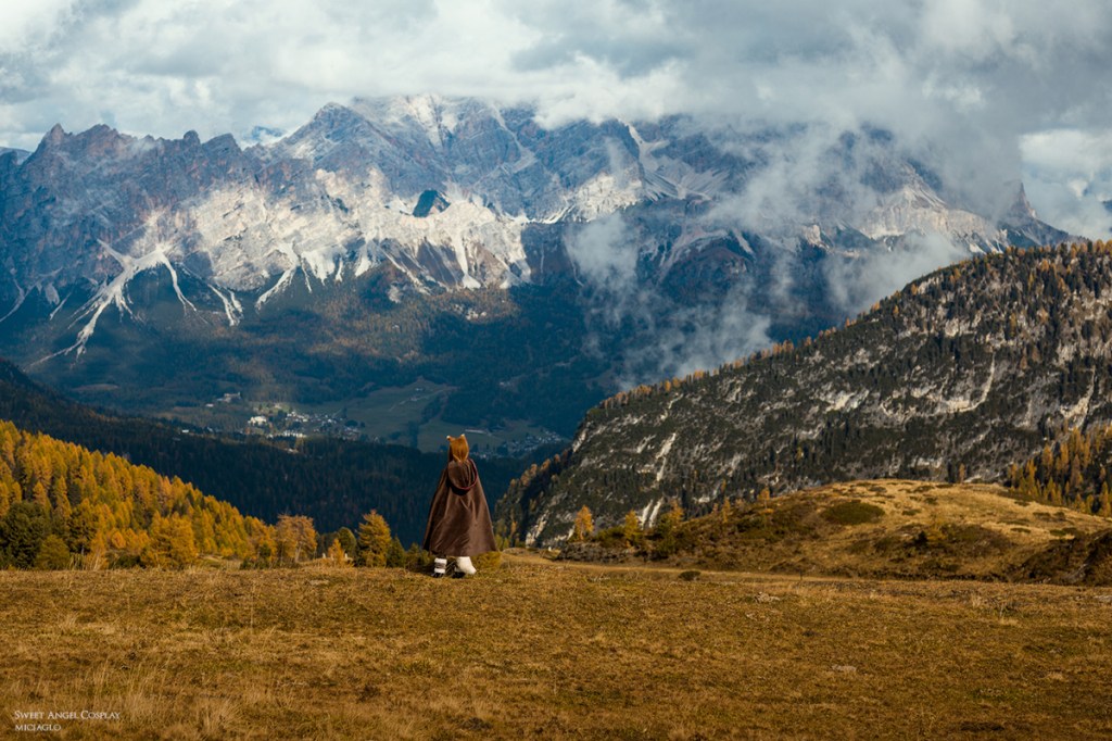 For the photoset, I chose one of my favorite environments: the mountains, in the same places where I usually go hiking. Despite challenging weather conditions (constant rain, cold temperatures, and low clouds reducing visibility) we embraced a more melancholic atmosphere, perfectly fitting the mood of the character’s journey.