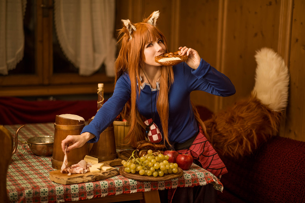 Holo is the main character from Spice and Wolf, depicted as a wolf deity traveling alongside a merchant through a medieval-inspired world. Among her various outfits in the series, I chose to recreate her blue winter version. For this cosplay, I focused on selecting materials with weight and structure to accurately convey the feeling of a true winter garment.