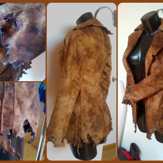 - I bought top and jeans in a local shop (was so hard to find them of the right colour) and then I cut/burned everything (my fingers too).