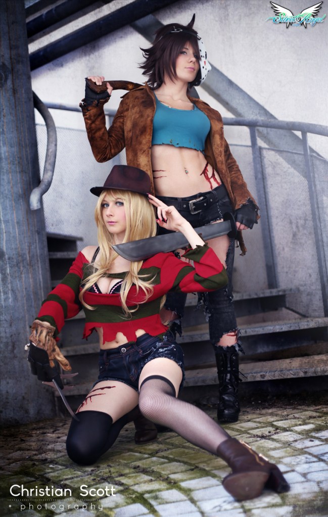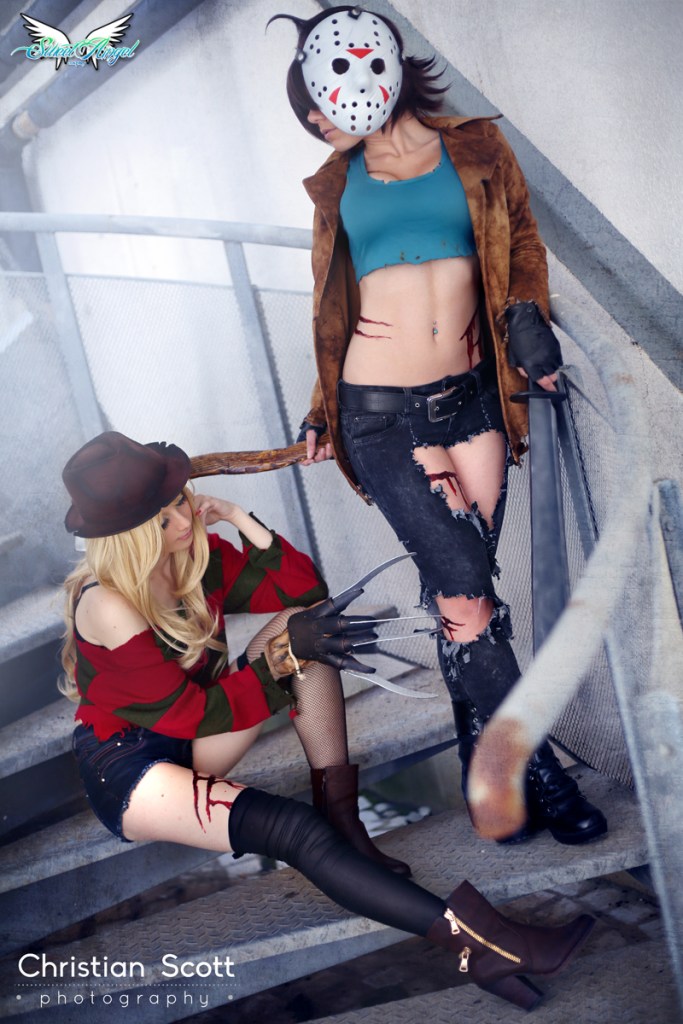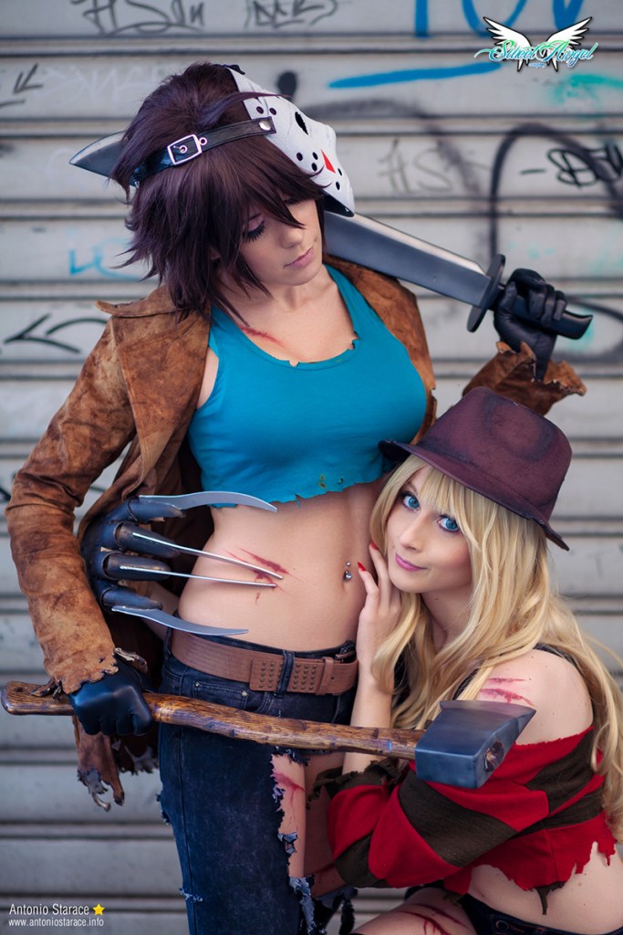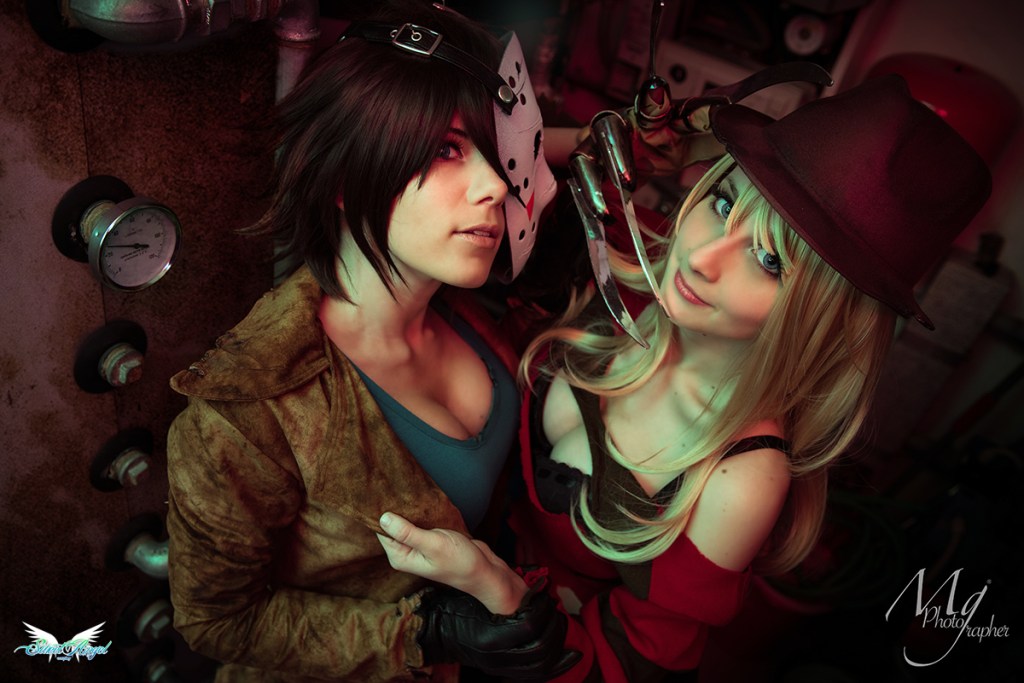 This cosplay started as a couple project with my friend Yuki no Hana. We decided to make a couple of characters easy to transport to conventions, comfortable and easy to wear. We totally loved Yamashita’s design about these two villains. We know there is a huge difference from the original movie “Freddy VS Jason”, but we wanted to be faithful to Yamashita’s creation because he’s one of our favoutite artist.