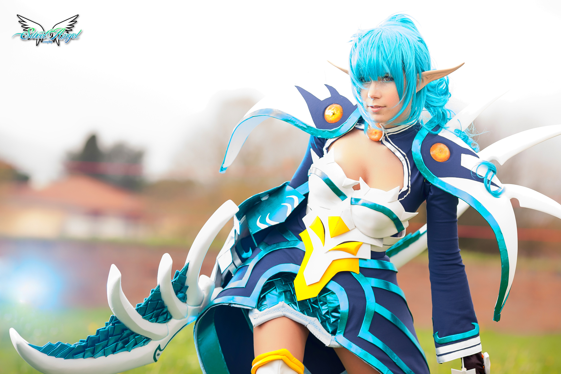 I started playing Elsword in 2012, and Rena quickly became my favorite character thanks to my love for elves and archery. The Salvatore Denif (Water Master) set immediately caught my attention, making this Rena cosplay a must-do project. It was one of my most challenging costumes for me in that time, both for the intricate anti-gravity skirt and the big bow build.