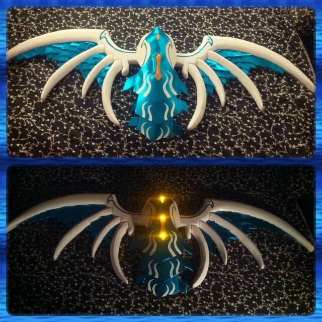 The armor is crafted from PVC, while all the gems were created using silicone molds and resin casting for a polished, translucent finish (with a LED inside).