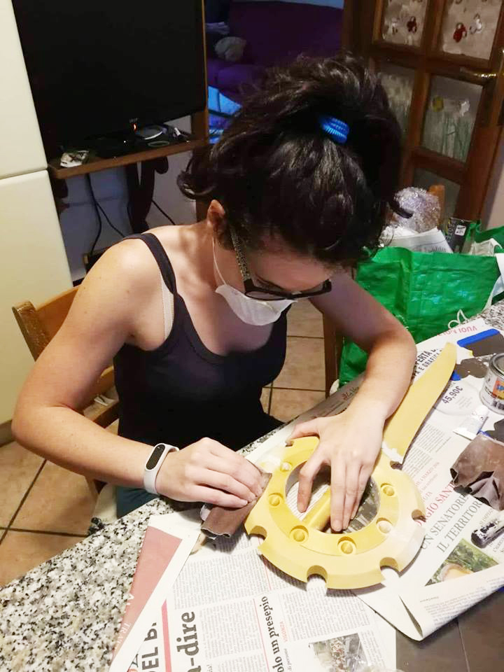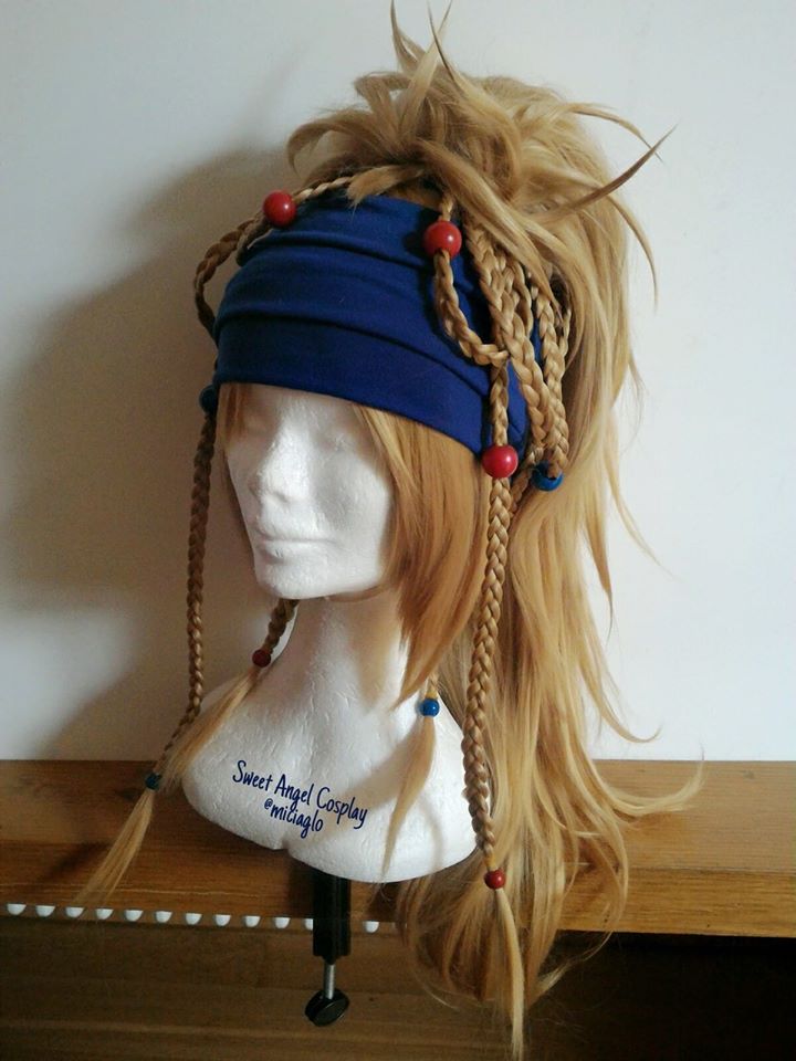 Great care went into selecting the fabrics and textures: with a simple costume like Rikku’s, every detail must be perfectly faithful to the original! I personally created the sewing patterns and made the skirt, sleeves, and bikini, ensuring each piece matched her game reference.