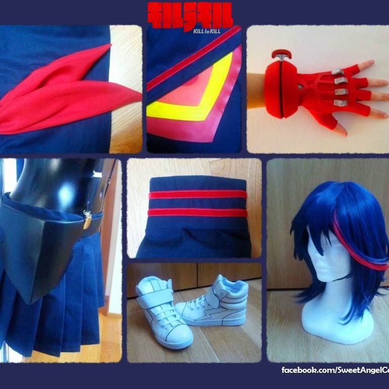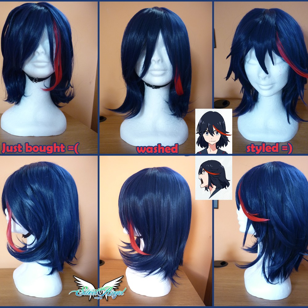 - Con la parrucca ho avuto parecchi problemi purtroppo… Mi è arrivata del colore sbagliato, puzzolente e con ciuffi rigidi appiattiti incollati: ho quindi dovuto lavarla e acconciarla (tutorial lavaggio qui). Dopo di questa ho ordinato altre 2 parrucche per Ryuko e sono state tutte problematiche, nessuna ad ora mi soddisfa. Ho fatto comunque un piccolo tutorial sull’aggiunta di una ciocca rossa a parrucca totalmennte blu.
