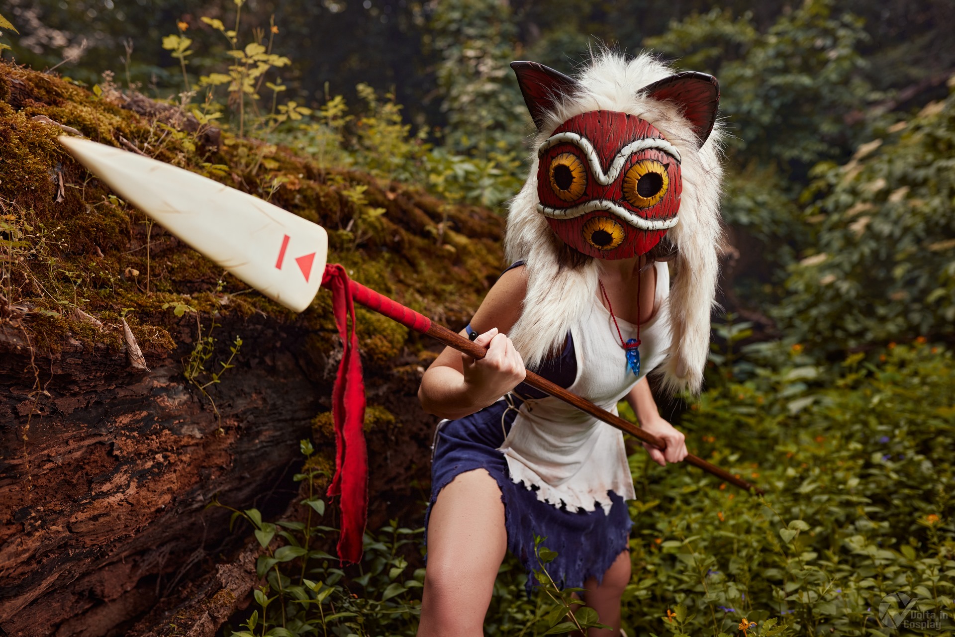 San, better known as Mononoke Hime, is a fierce young warrior raised by wolves in a mystical forest. She stands as a protector of nature, embodying wild strength, independence, and deep loyalty. Her iconic red mask and fur pelt symbolize her bond with the wolves and her fight to defend the forest.